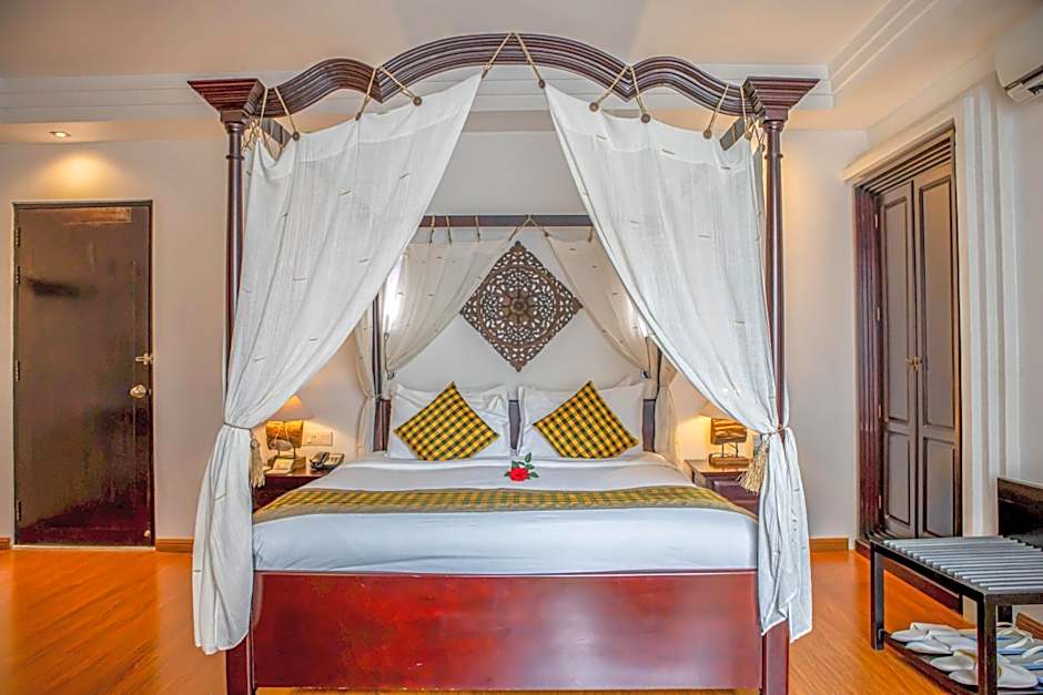 Offering a balcony with city views, this air-conditioned triple suite features a flat-screen cable TV, DVD player and an electric kettle. The complimentary mini-bar is replenished daily. Benefits include: - Welcome fruit platter in the room - Complimentary welcome nonalcoholic cocktail upon arrival - One-time 60-minute Khmer massage per guest